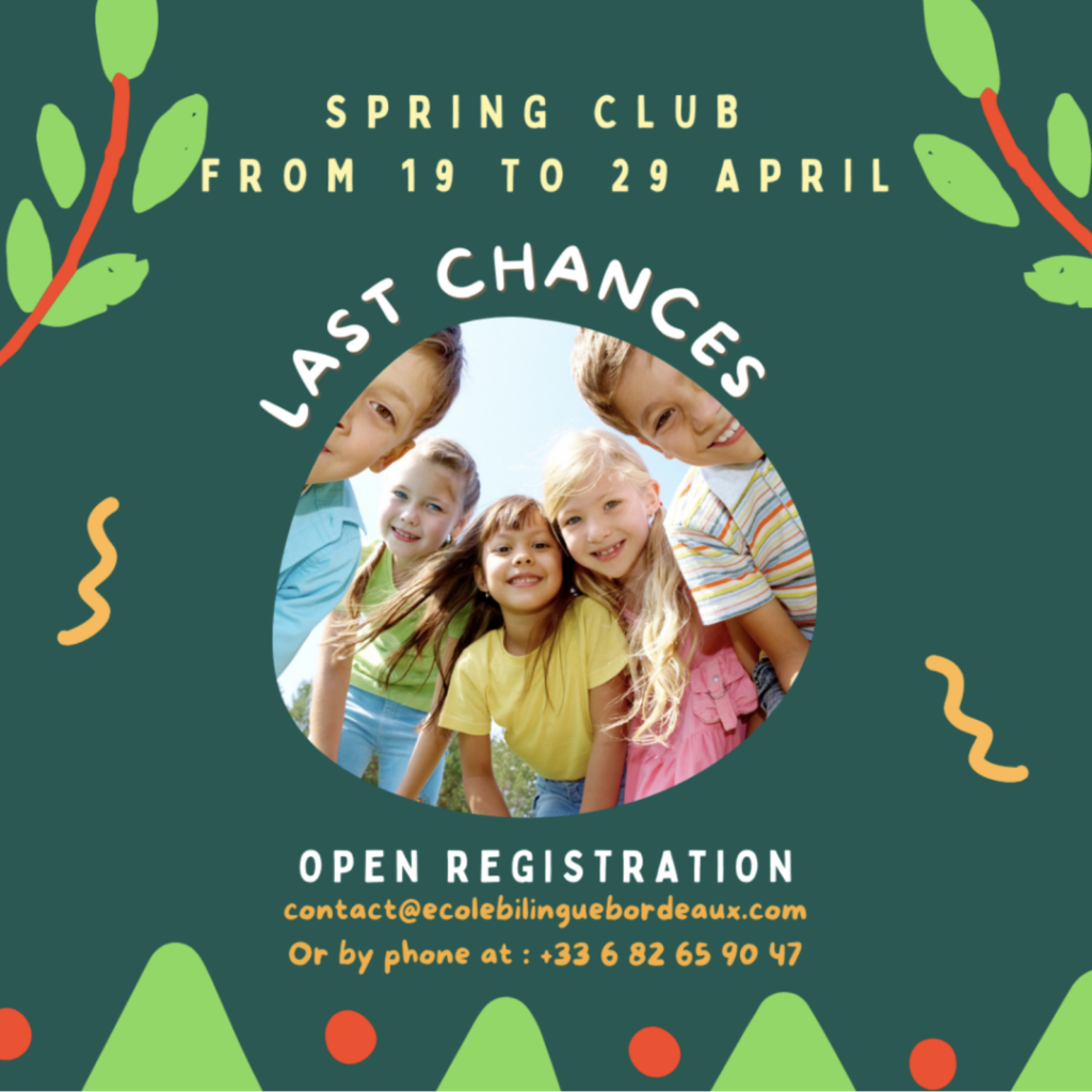 Planned activities : theatre, cooking lessons, painting, stories, art, dance, and lots of fun ! Register now : call us on 06.82.65.90.47, by email contact@ecolebilinguebordeaux.com or contact us in PM. See you soon